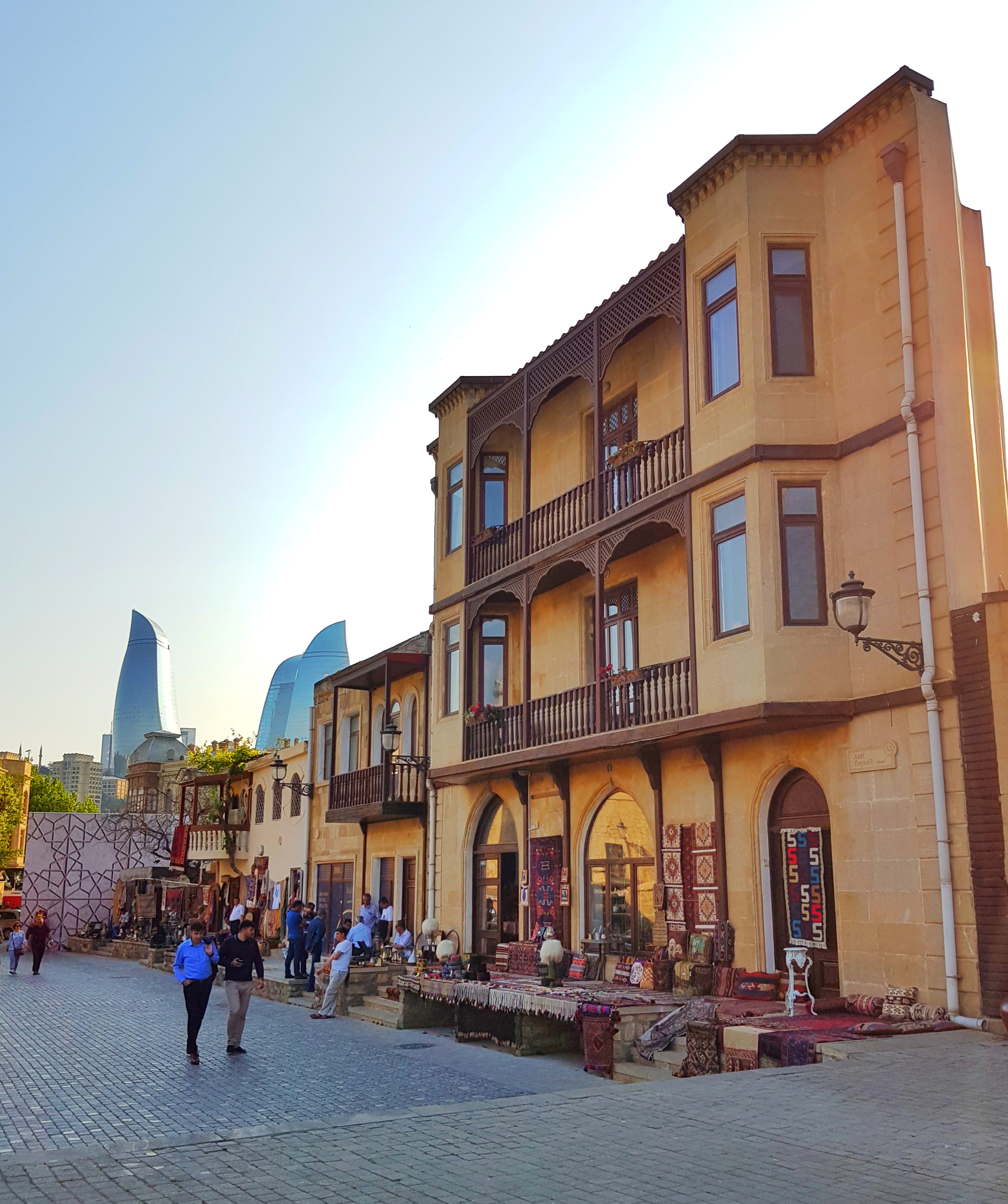 Moved on to the Old Town ( İçərişəhər). It was a small street with souvenir shops on either side and street vendors approaching to come in and see what special items they have to offer. The Flame Towers were peek-a-boo’ing in the backdrop too.