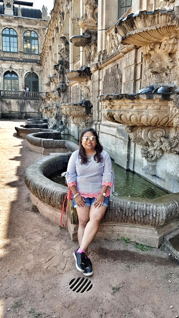 Zwinger is a historical palatial complex ornate with gardens and fountains in the courts. It houses museums with invaluable international displays and is a popular venue for cultural and theater acts. It was great to lounge around a click some photos with the raw architecture. Ice-cream was a must to cool down, as it was a scorching 40 deg Celsius and we were melting away.