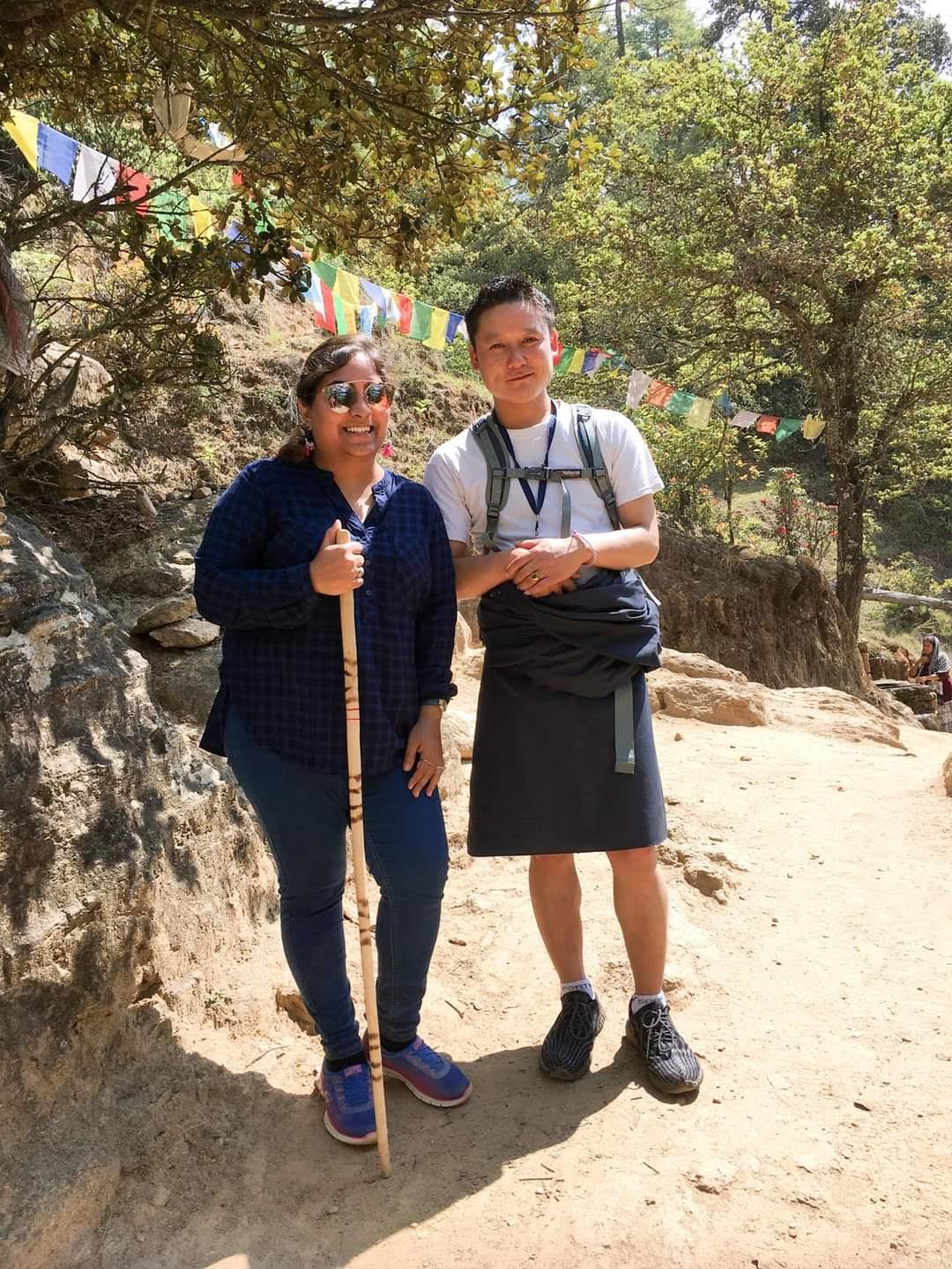 With few pauses along the way, learning about more about the history and culture of the site (thanks to Kado), we made it to the halfway point. It took us approximately 1.5-2 hours to get there. We rested, for 20 about minutes at the Takstang Cafe and had some famous butter tea (not for my palette, but worth a try) before we continued our way to the top. The colorful prayer flags all through the way kept the energy levels high.